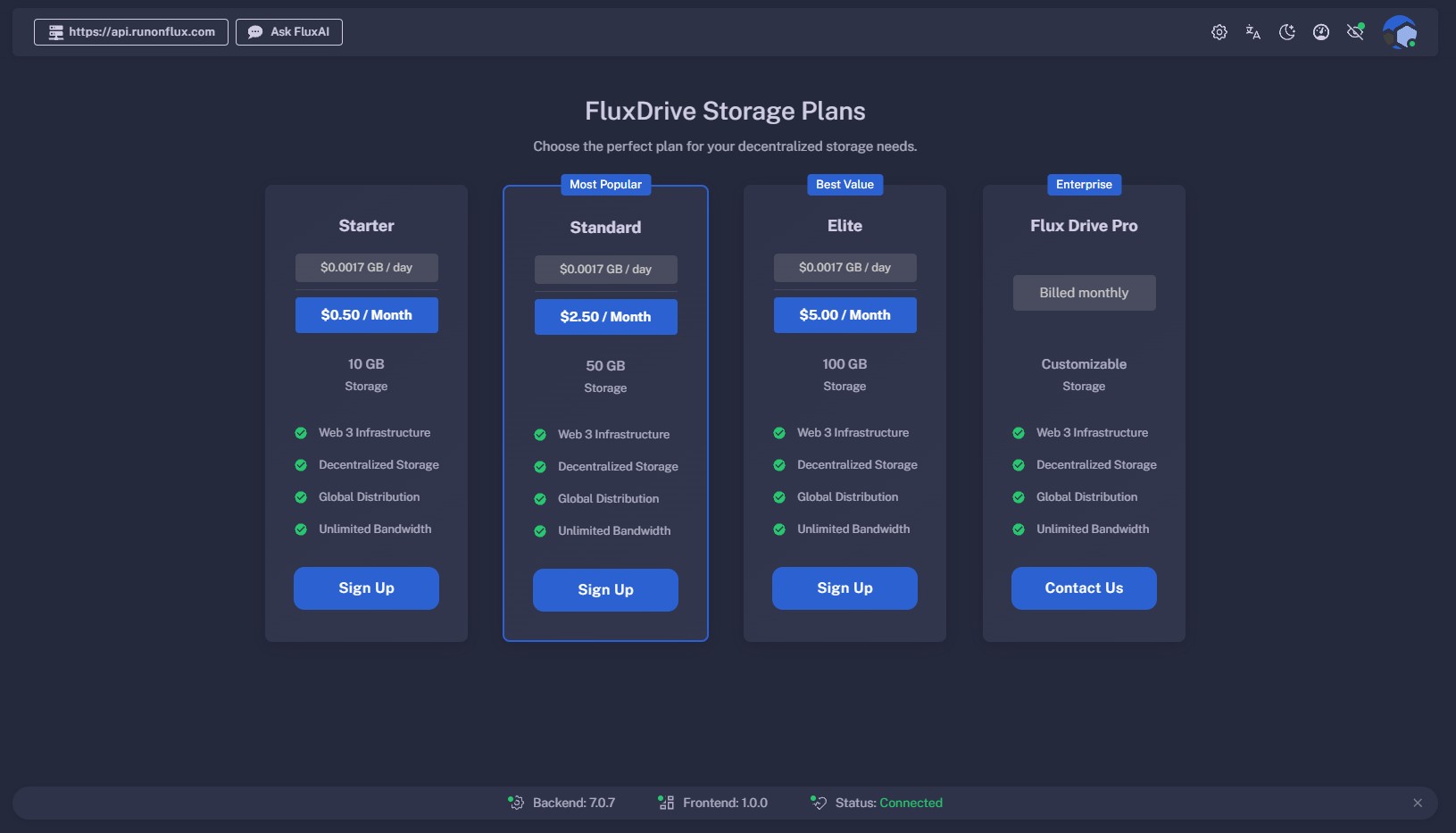 In addition to compute resources, FluxCloud also offers decentralized storage powered by IPFS.