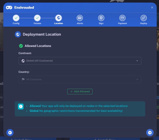 - Configure whether you want your Palworld server to deploy in specific geographic regions: