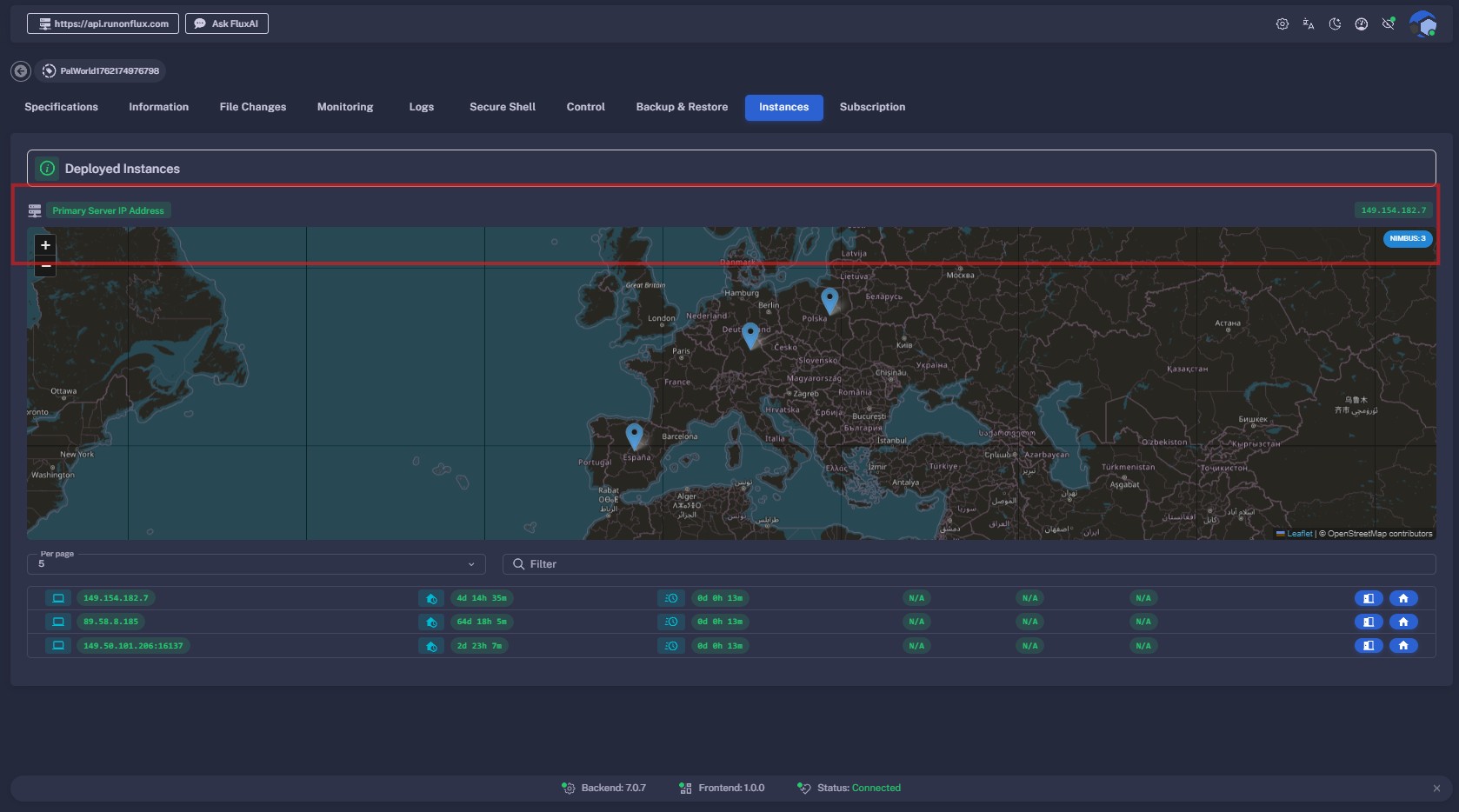 Flux runs on a decentralized network, meaning your application is deployed across three instances.