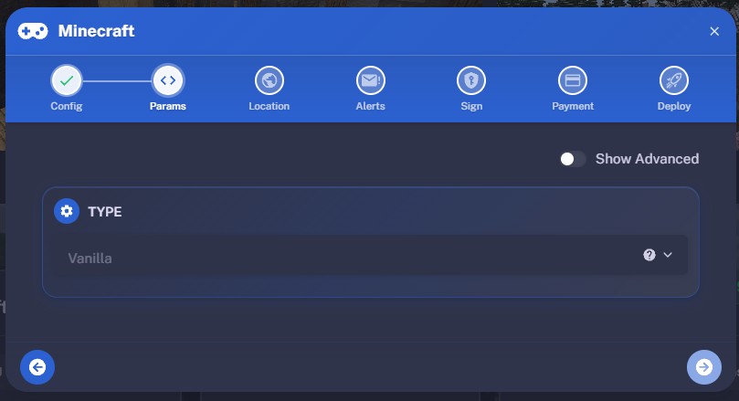 - Select the type of Minecraft server you want to deploy, such as Vanilla, Paper, or another supported version.