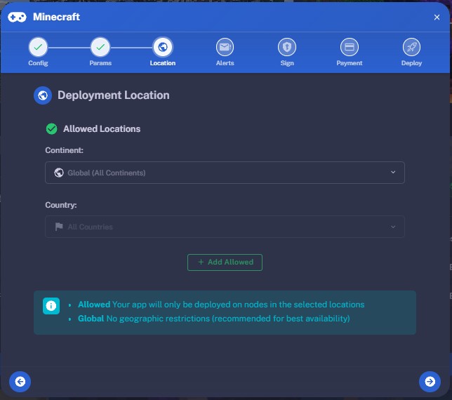 - Configure whether you want your Palworld server to deploy in specific geographic regions: