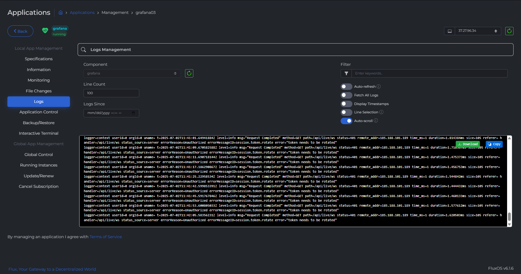 - Auto-Scroll – Enable or disable automatic scrolling to the latest log entries.