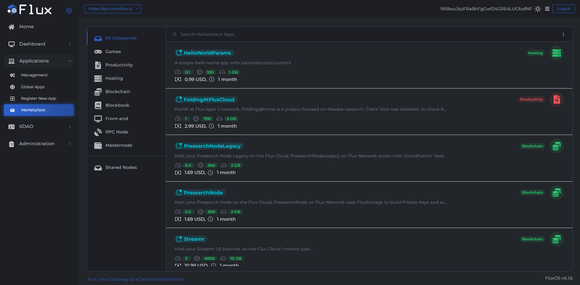 Whether you're looking to run a game server, launch a blockchain node, or deploy a full web app stack, the marketplace provides a seamless experience across a wide range of categories.