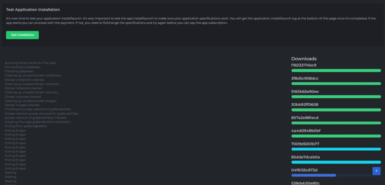 The Validate & Pay section is the final step after completing all previous sections. It allows you to register, test, and pay for your application deployment on the Flux network. Follow the Registration Steps below.