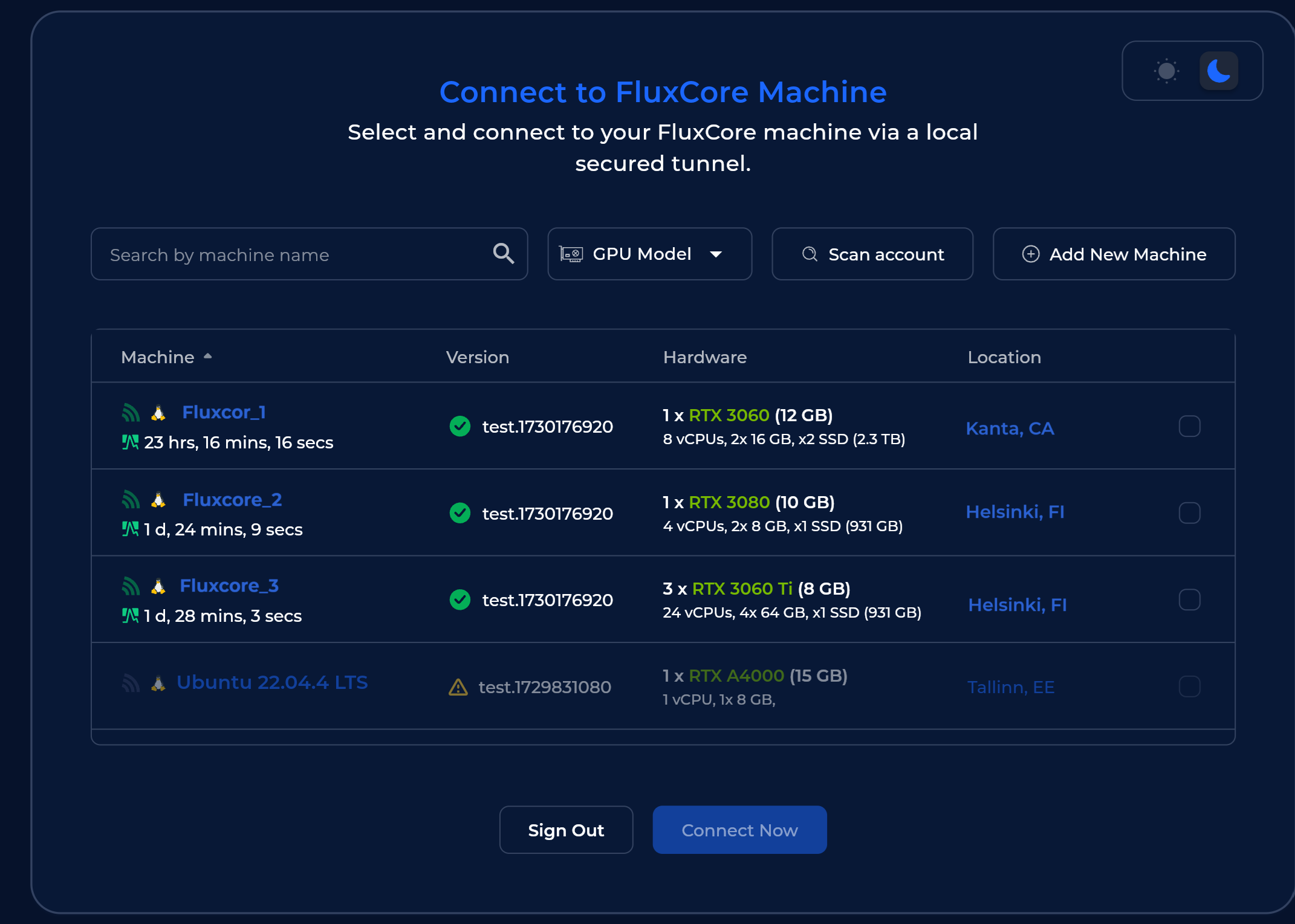 We are pleased to introduce SSO (Single Sign-On) external login for managing your Fluxcore machines. Sign in on this page, or sign up to create an account if you don’t already have one!
