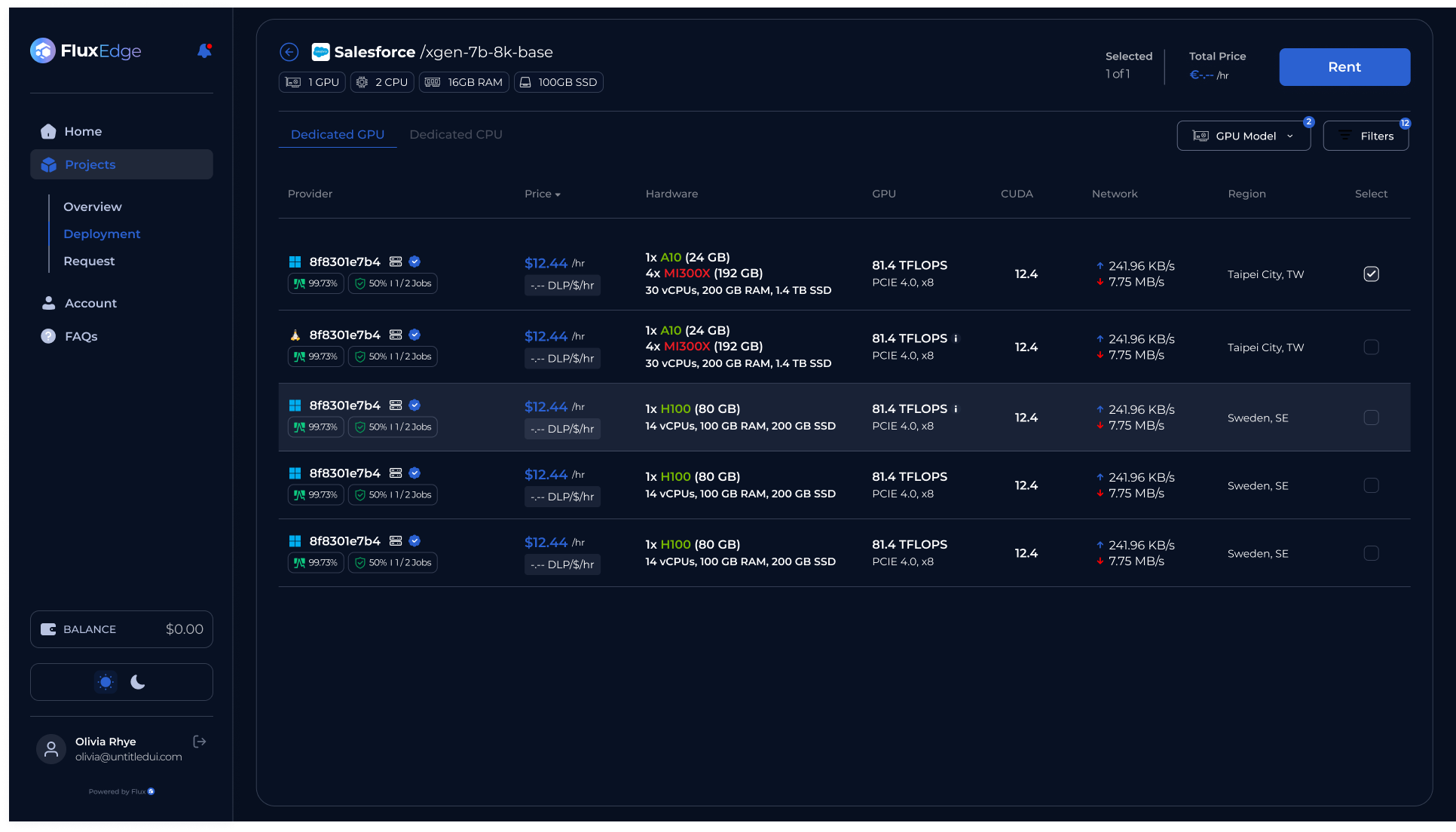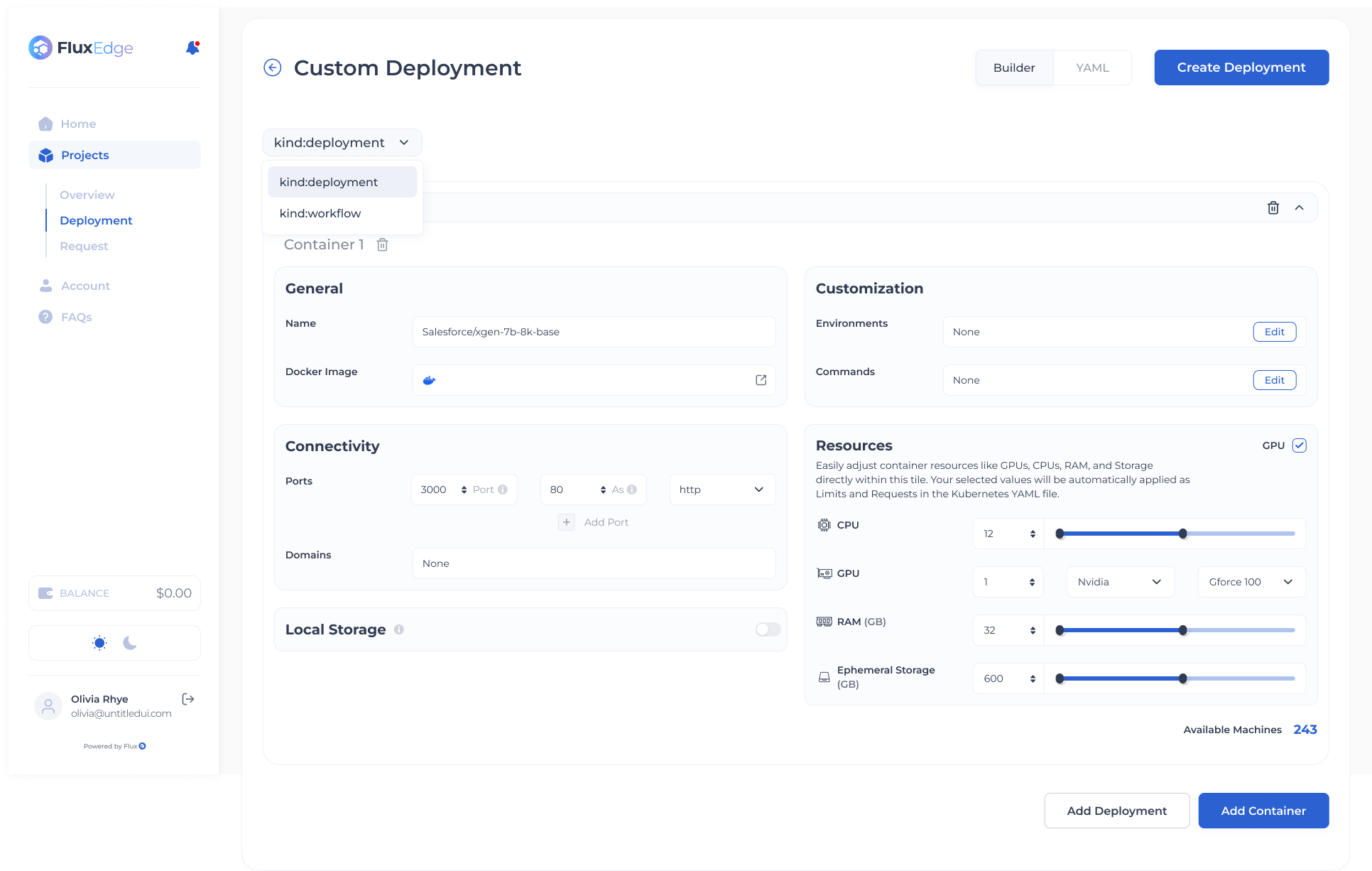 By following this guide, you can efficiently create a custom deployment and select the optimal machine for your needs on FluxEdge.