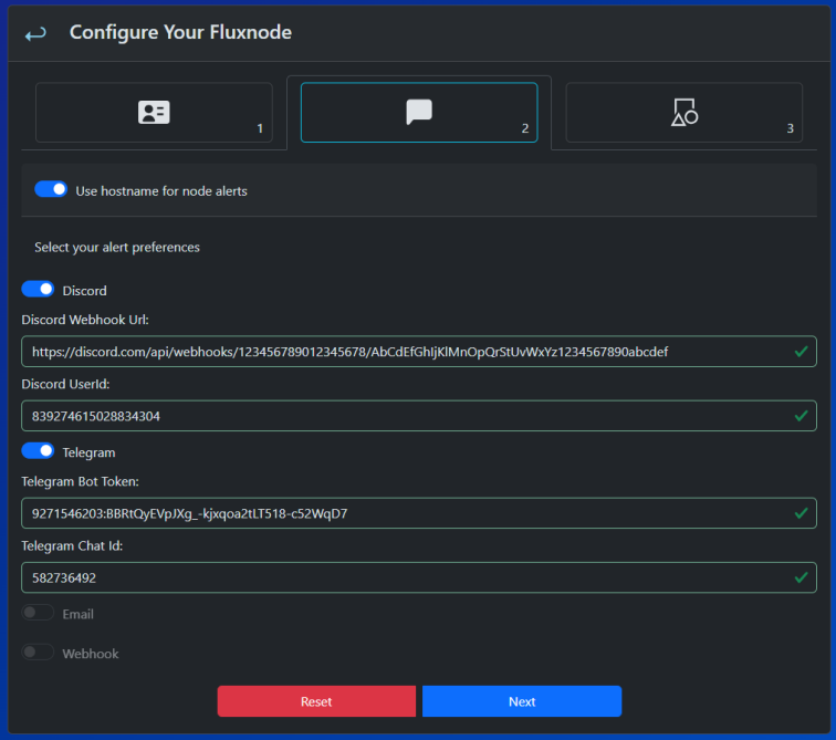 Stay informed about your FluxNode’s status by setting up optional alerts. You can configure notifications now or skip and return later.