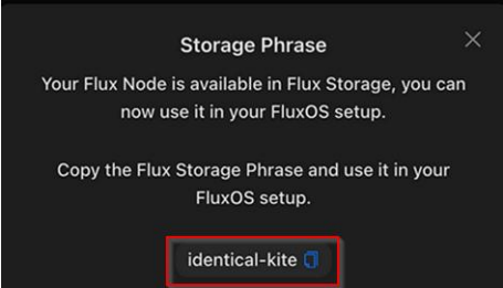 - Confirm the prompt and copy the storage phrase.