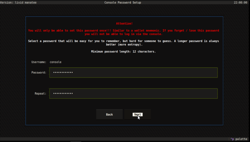 - ArcaneOS uses strict Role-Based Access Control (RBAC). You’ll now configure the only console-accessible user: