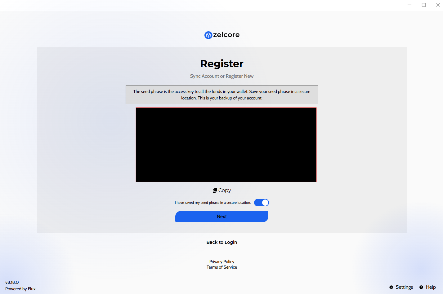 💡 If you already have a wallet set up, you can skip this step and continue to Send the Required Amount of Flux to Your Wallet.