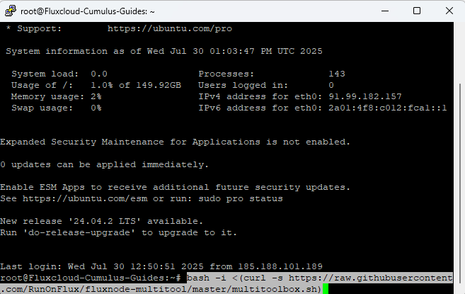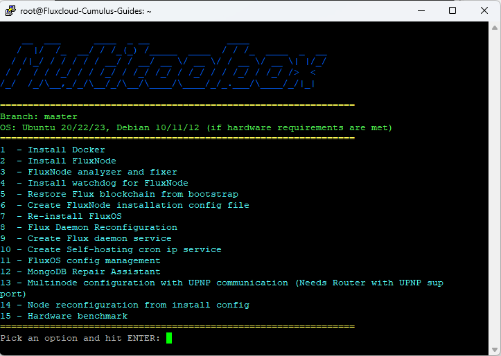 Flux provides a comprehensive multitoolbox script to streamline Docker installation, FluxNode setup, benchmarking, and service management. Follow the steps below to deploy your node.
