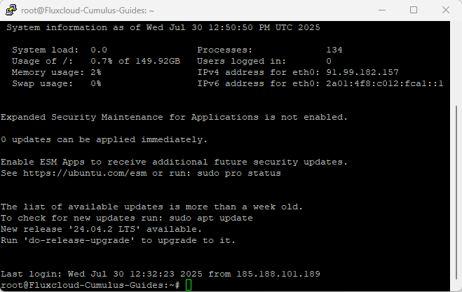 Before deploying the FluxNode software, it’s critical to bring your operating system fully up to date with the latest security patches and package improvements.