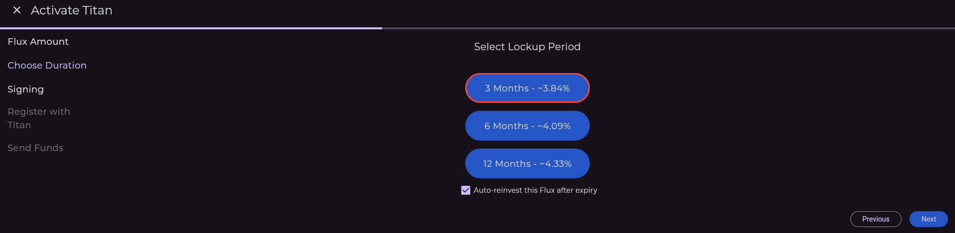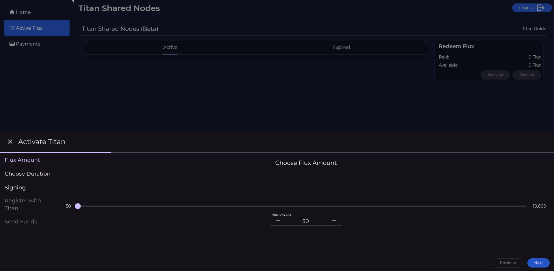 - Select or Enter your FLUX amount (50–10,000 per node).