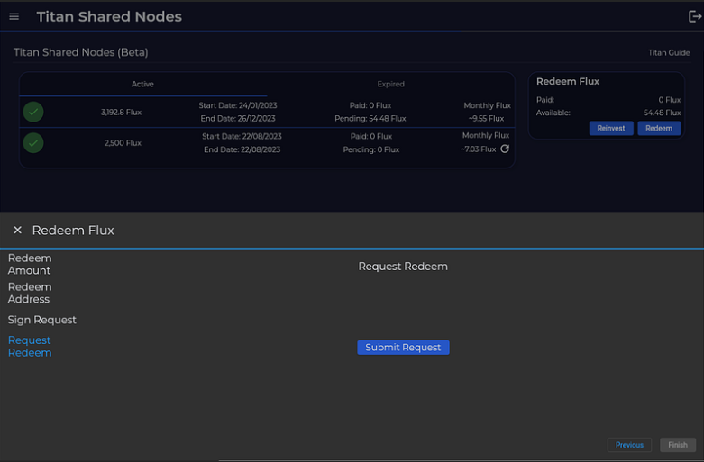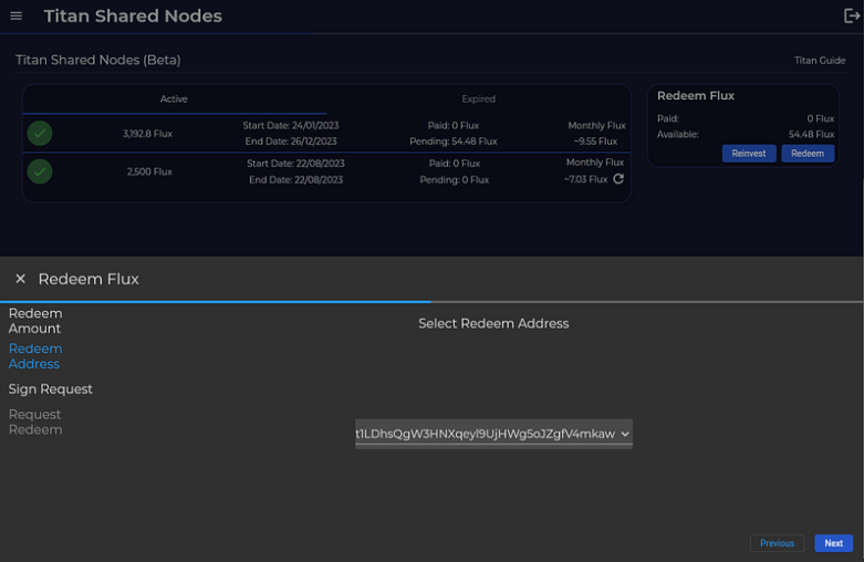 - Redeem — Send your FLUX rewards to a wallet address of your choice.